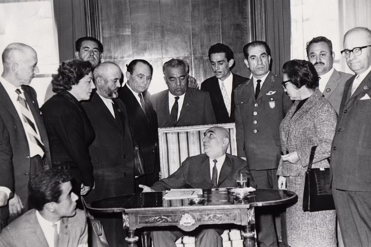 Cemal Gürsel, the 4th President of the Republic of Turkey (Sitting on the Chair), who lived between 1895-1966, the bespectacled person on the right of the photo is my mathernal grandfather, Ali Rıza Ararat.